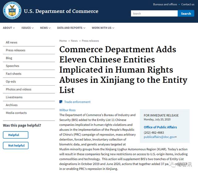 2020年7月21日凌晨,美国商务部工业和安全局(BIS)将11家中国企业纳入实体清单。未经美国政府批准,被列入黑名单的企业不能从美国企业购买零部件。