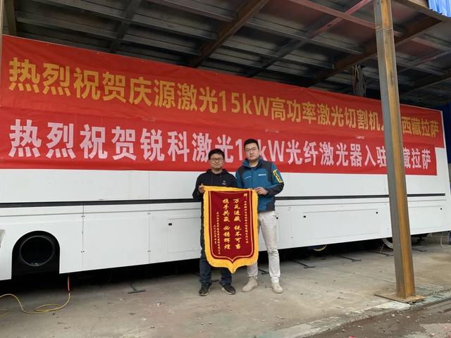 本次进藏的15 kW高功率激光切割机由无锡庆源激光科技有限公司(以下简称“无锡庆源”)生产,庆源激光市场总监陆峻峰表示,“庆源和锐科至今已合作了9年多,从锐科第一台500 W光纤激光器、第一台1 kW光纤激光器等一系列的合作至今,我们的万瓦以上设备已经销售了100多台,其中锐科激光器占比40%左右。”