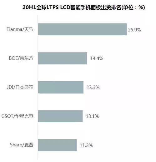 近日,业内知名调研机构群智咨询(Sigmaintell)发布了2020年上半年全球LTPS LCD智能手机面板出货排名。上半年,天马LTPS LCD面板出货量约为6500万片,位列全球LTPS LCD 智能手机面板出货首位,占全球总体LTPS手机面板出货量的25.9%,即每四台LTPS屏幕的手机,就有一台搭载天马LTPS显示屏。
