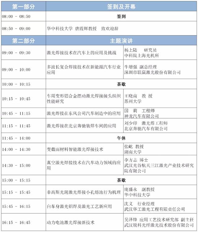 目前,会议嘉宾和议程已确定。我们邀请了科研院所、激光企业、汽车整车制造企业等激光焊接领域的知名专家和用户进行零距离的沟通与互动,共同探讨激光焊接在汽车制造方面的新应用,推动汽车制造的自动化、柔性化和智能化发展,提高汽车制造的工作效率。